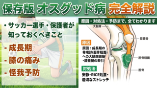 こんにちは!トレーナーとして13年間、育成年代のサッカー選手と関わってきた「まつ」です。「膝の下が痛くてサッカーができない」「練習後に膝が腫れてきた」こういった悩みを抱えている選手や保護者の方は多いと思います。それ、もしかしたらオスグッド病...