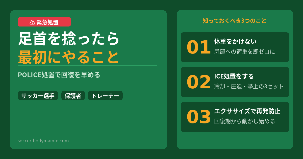 【足関節捻挫】サッカー中に足首を打ち返しに捻ったときの正しい対処法と回復エクササイズ